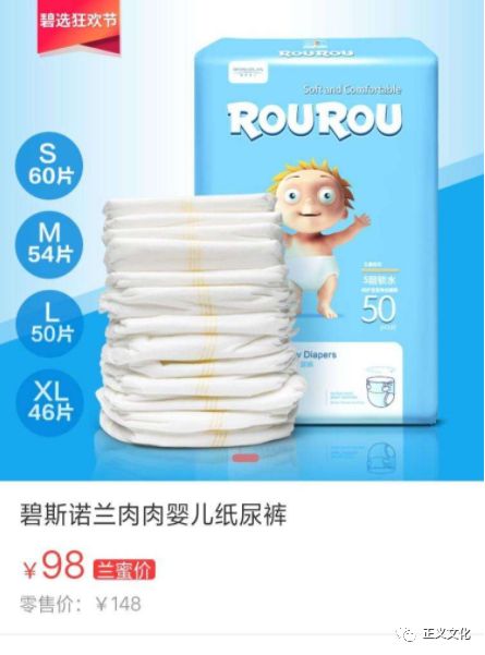 除了女神卫生巾,碧斯诺兰在2017年下询发布了另一款产品“碧斯诺兰肉肉纸尿裤”,一款对外宣称是“轻薄透气、吸水性好、防回渗、防侧漏、质感柔软”的高品质婴儿纸尿裤。