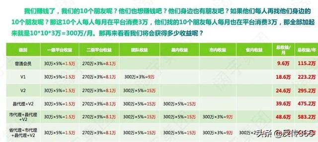 ⭐省代理:直建三个市。整个省区消费累计1亿×2%(一个月累计拿3次×200万=600万)