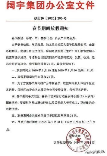 在2019年12月底公司突然宣布放假,引起大批会员的恐慌,在2020年1月9日阔宇集团发出的通告,一些团队的领导也纷纷出来安抚会员恐慌的情绪。