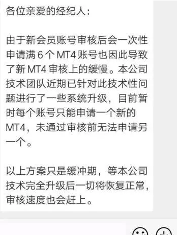 近段时间PTFX无缘无故时常维护,都是在升级,最近半个月尤其明显,现在又搞出来6个MT4账号就缓慢,却没有见同时跟单几万个账户出现缓慢的情况。猜测是因为入金少故意说系统缓慢拖延出金找借口。