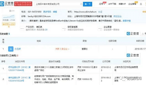 在查询中发现,百中草本曾因虚假宣传分别被处罚1万元和10万元。
