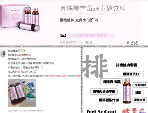 对于网友提到的真珠美学酵素饮品,清扬君也查询了一番,发现这款声称“能减肥”的真珠美学实际上只是普通食品类产品,并非保健品,更无“瘦身”、“排毒”、“治便秘”、“增强抵抗力”、“调节内分泌失调”、“净化血管”等功效。