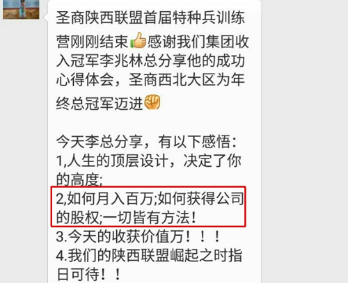 学员到达一定级别后,就可以“推荐”新人听课获得高额提成,例如拉一个人上普通班的课程可提1200元,拉一个人再上高级班可提30000元。业内人士向鸿途经济网表示,圣商教育的不少学员都是通过套刷信用卡来付的“学费”,与此同时,利用深陷圣商教育的学员去拉人,能够裂变式提升学员数,也是进一步将学员最后的价值榨干净,圣商教育这一拉人头的模式已经涉嫌精神传销,该公司也因此遭到监管部门调查。
