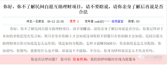 据了解,“民间自愿互助理财”已在河北省燕郊镇运作多年,尽管“民间自愿互助理财”早已被司法机关认定为传销组织,但是仍有诸多人前赴后继的被骗,真可谓是“百足之虫死而不僵”。