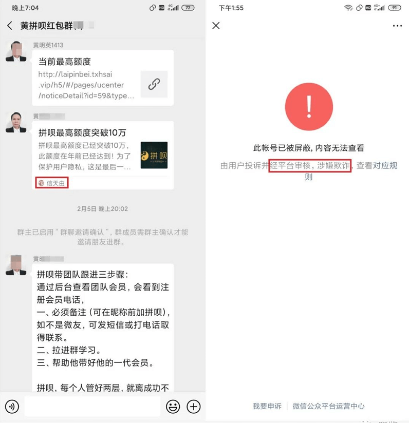 关于“拼呗”涉嫌传销的风险提示推广号涉欺诈被强制屏蔽