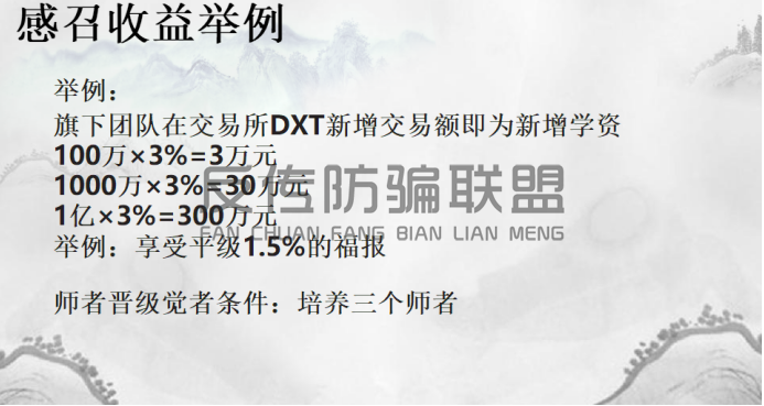我们再来看看天机集团的“德孝通TXT创富计划”是如何产生收益的:
