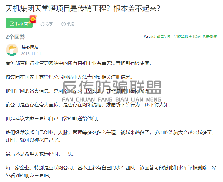 近两年,网络上虽然少有关于河南天机集团的负面报道,但是网友们对于天机集团的传销骗局却吐槽不断: