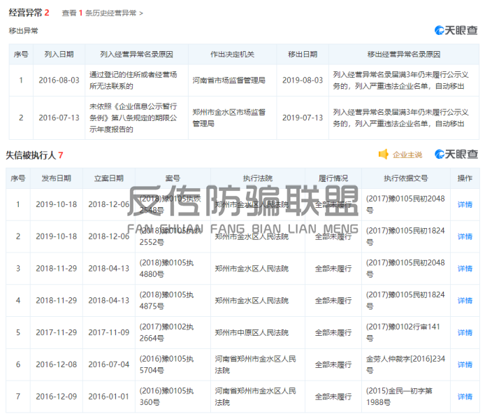 在天眼查上面查看凤凰实业的过去,真可谓是劣迹斑斑,在2016年因登记住所无法联系和未出示年度报告而被列入经营异常名录,在2019年因连续三年未履行公示义务而被列入严重违法企业名单。