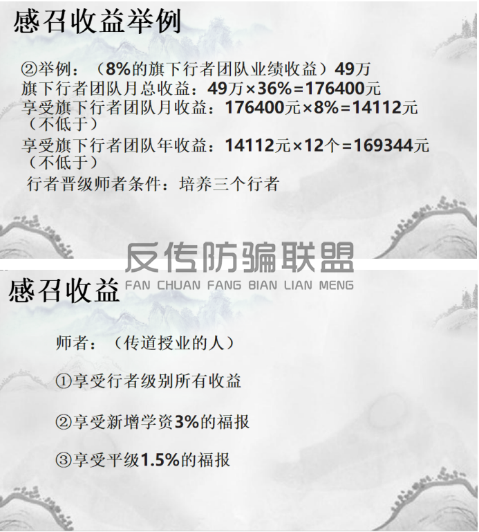 (一) 组织者或者经营者通过成长人员,要求被成长人员发其他人员插手,对成长的人员以其直接或者间接滚动成长的人员数量为依据计算和给付酬金(包罗物质奖励和其他经济利益,下同),牟取不法利益的;