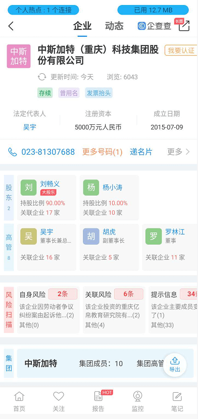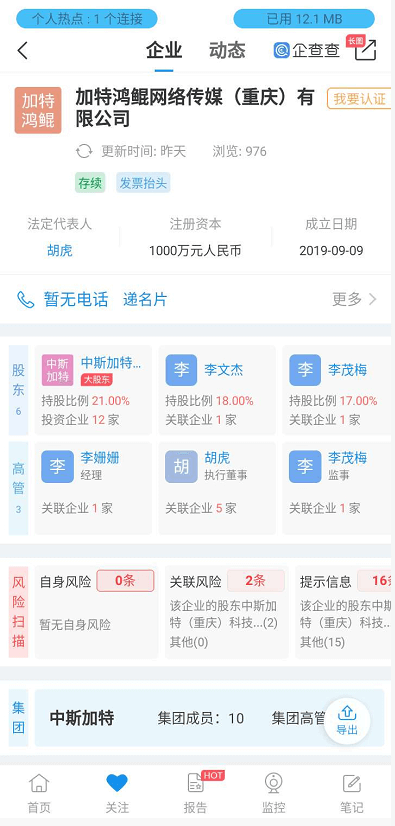 在视频中,刘畅义明确的说了慈音是其合作伙伴,小编通过企查查查询到,加特鸿坤网络传媒(重庆)有限公司的大股东为中斯加特(重庆)科技集团股份有限公司。