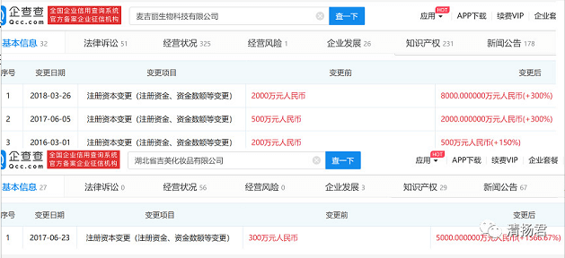 2018年3月26日,麦吉丽的注册资本由2000万元变更为8000万元,增幅300%;
