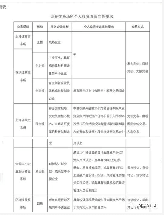 交易场所 板块 服务企业类型 个人投资者适当性要求 交易方式