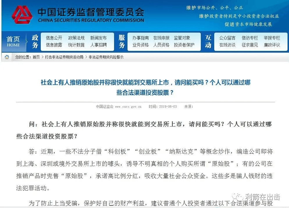 证监会:利用“原始股”吸金,承诺高回报是违法犯罪!怎样购买真正的原始股?