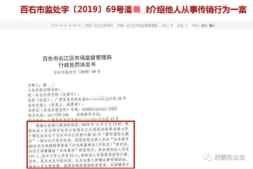 大家关心已久的“未来集市”传销案件,这里有市场监管局的两个行政处罚。