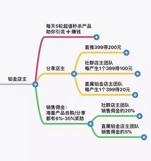 2019年7月份,潘某娜经武汉人金某的介绍,使用自己手机下载“未来集市”APP,并注册账号,随后在该平台购买了一个399元大礼包,成为“未来集市”的VIP店主,并加入“未来集市”总公司旗下战略合伙人之一的金“微跃家族” 团队并成为直接下线人员。