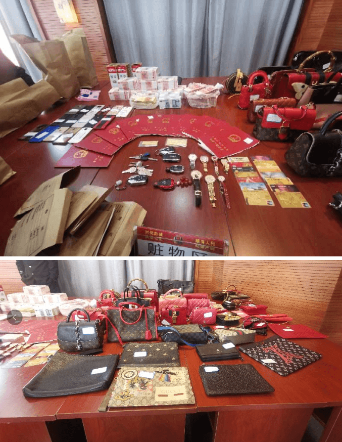 据了解,这些奢侈品都是用诈骗所得的钱款购买的。