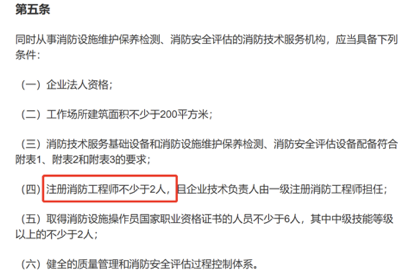 同时,取得一级资质要求有10人以上的注册消防工程师,二级资质则需要6人以上。是否拥有足够数量的注册消防工程师,成了企业能否注册成为消防技术服务机构的“硬指标”,从而催生了大量对于相关人才的需求。