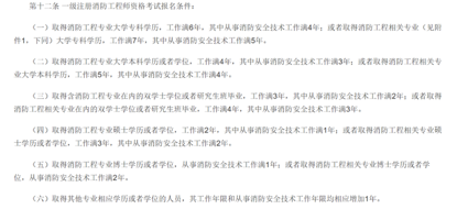 《注册消防工程师制度暂行规定》中有关报名条件规定