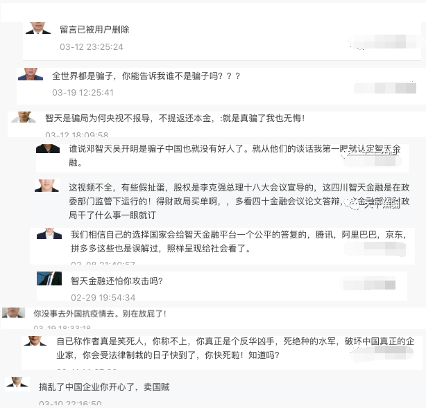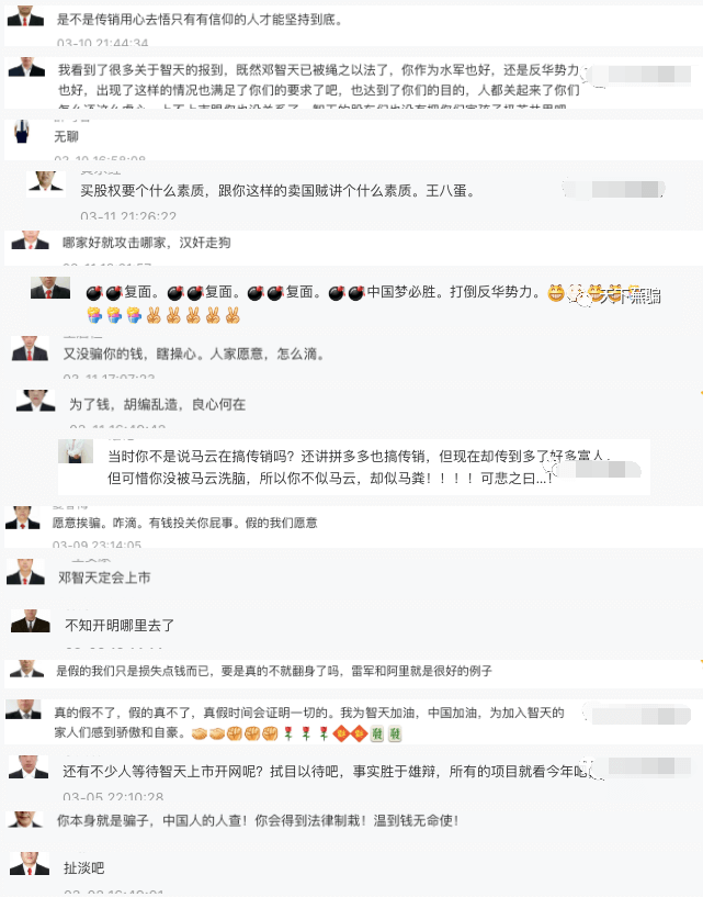 3 老年人思想保持但又爱跟风,看到什么人做的人多了会经不起别人的鼓动就会投入其中。这点我们从智天金融的死粉留言中可窥见一斑,很多都是清一色的以西装革履作为头像,搞得好像真的买了智天原始股自己就摇身一变成为千万富翁一样,还是想通过西装革履给自己装门面试图忽悠更多的人,还是想进行自我麻醉让自己一直沉浸在千万富翁的美梦当中。
