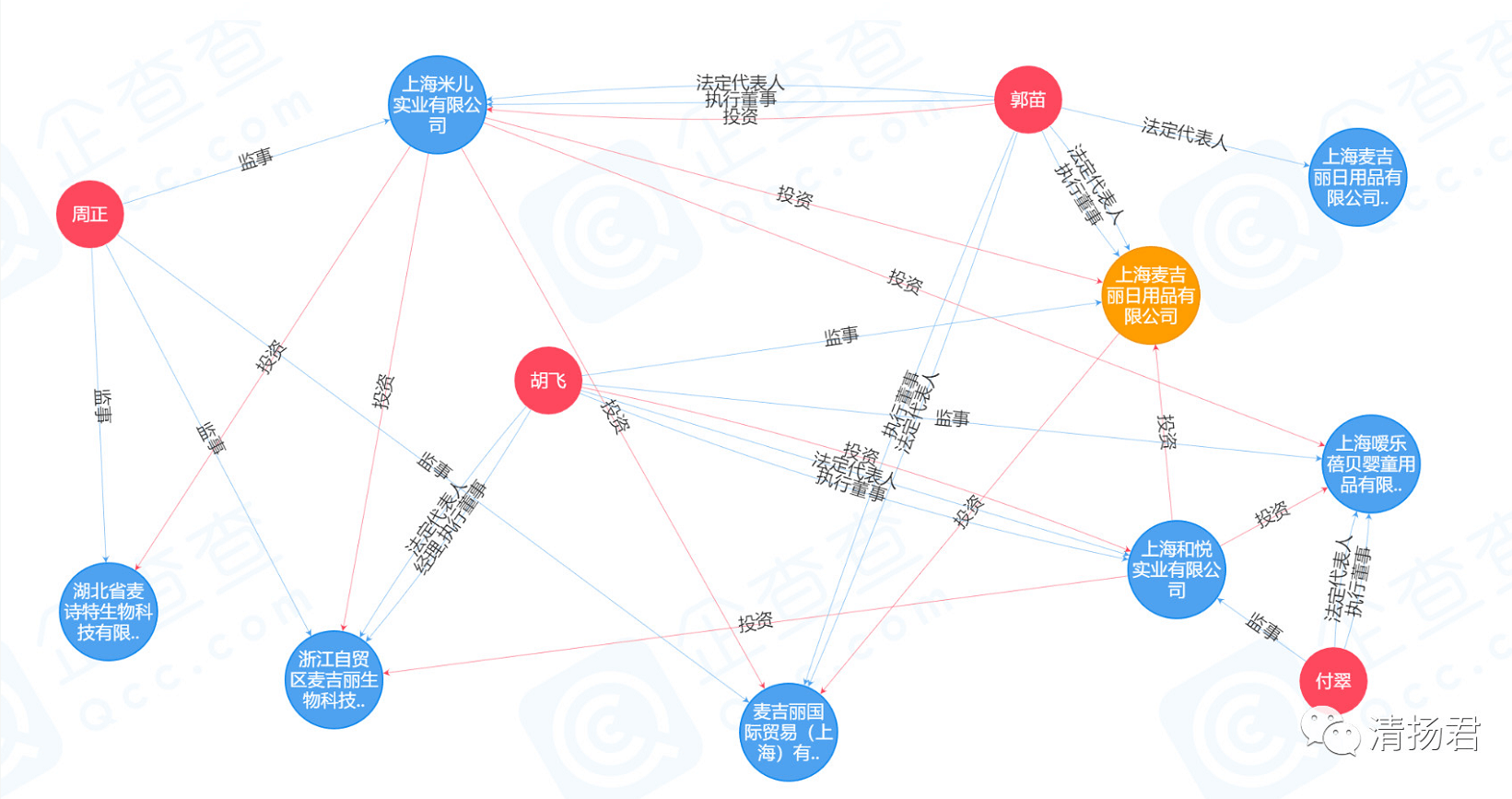 此外,周正是麦吉丽生物科技有限公司(以下简称“麦吉丽”)的监事,同时也是浙江自贸区麦吉丽生物科技有限公司、湖北省麦诗特生物科技有限公司、上海米儿实业有限公司、麦吉丽国际贸易(上海)有限公司等公司的监事。