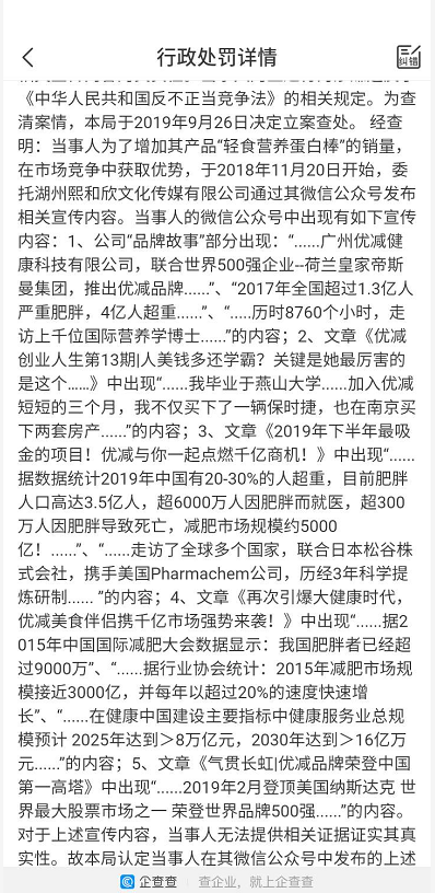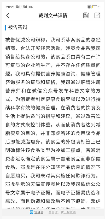 而在19年上半年优减被职业打假人因宣传资料遭到职业打假,而在法院 的判决书当中,优减公司承认其产品并没有减肥功效,