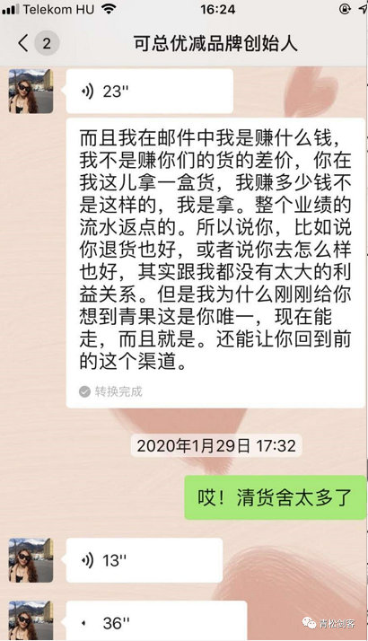 团队长边干微商,边帮下线清货,承诺退货,遥遥无期
