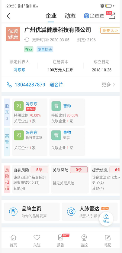 小编通过企查查查询到优减为广州优减健康科技有限公司