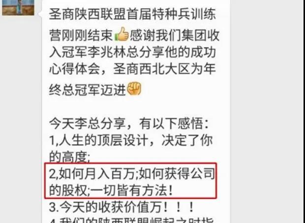 学员到达一定级别后,就可以“推荐”新人听课获得高额提成,例如拉一个人上普通班的课程可提1200元,拉一个人再上高级班可提30000元。业内人士向鸿途经济网表示,圣商教育的不少学员都是通过套刷信用卡来付的“学费”,与此同时,利用深陷圣商教育的学员去拉人,能够裂变式提升学员数,也是进一步将学员最后的价值榨干净,圣商教育这一拉人头的模式已经涉嫌精神传销,该公司也因此遭到监管部门调查。