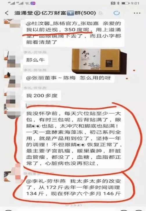 据中国网财经报道,该系列产品有3款,分别是“生姜穴位贴”、“薰衣草穴位贴”、“绿茶穴位贴”。其中,“生姜穴位贴”对风湿、类风湿、关节炎、颈椎病、肩周炎、腰突、宫寒、滑膜炎积液等问题有功效;“薰衣草穴位贴”对失眠便秘、降三高、月经不调、感冒发热、咳嗽湿疹等问题有功效;“绿茶穴位贴”具有袪湿排毒、抗氧化、延缓衰老、抑菌消炎、养心护肝等功效。亦有多位“溢涌堂”代理在其朋友圈宣称公司产品具备“净化血管”、解决“乳腺问题”、“补阳壮骨”等功能。在某代理群中的售后反馈中,有的代理称该足贴不仅能够治愈近视,还能够减肥,甚至能够有效地缓解乃至治愈子宫肌瘤。