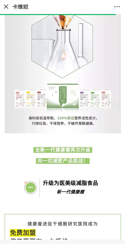 在代工商出问题后,卡维达推出了号称医美级的健康瘦新品