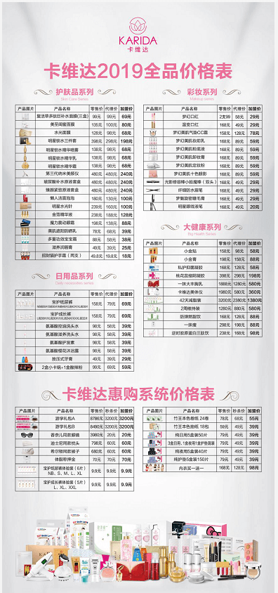 客户要加入如今的卡维达,同样也有代理和加盟商两种形式可以选择。代理现在是任意购买价格达到一定金额后就可以成为代理,第二次购买任意产品都是代理价,而代理门槛不论是39元,还是98元都是没有限制的。