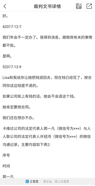 小编通过查询卡维达的历史诉讼记录,在一起合同纠纷的案子中发现了些有意思的东西,