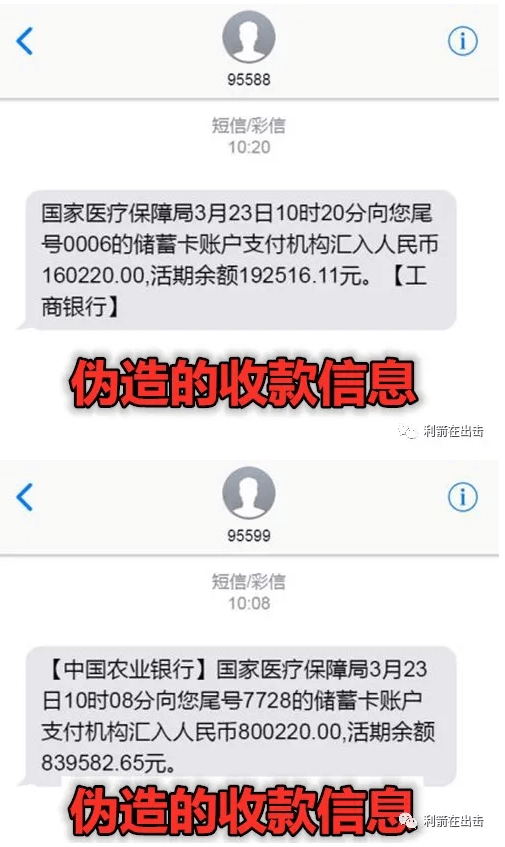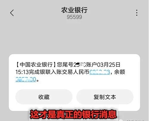 有农业银行卡的人,拿出手机看看银行发的消息,看看版本就能识别上面那个“国家医疗保障局”发的福利是假的啦!