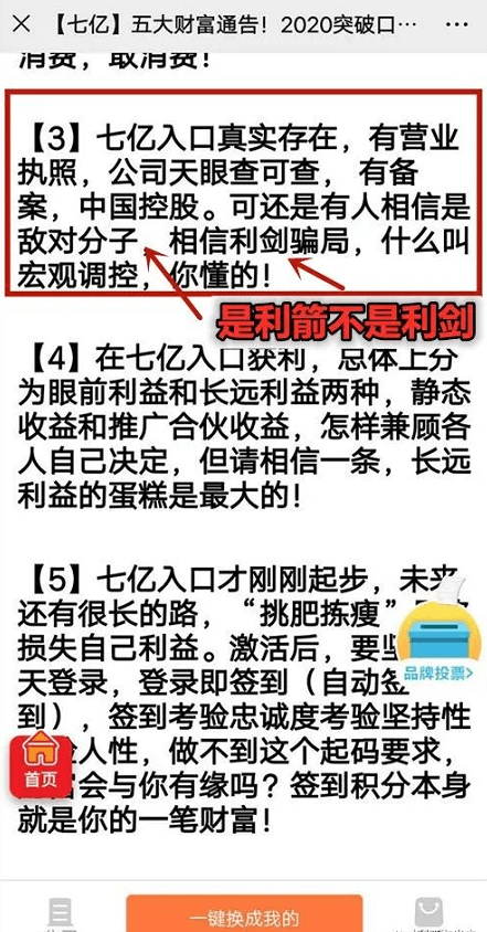 利箭在出击曝光了冒充国家项目的“七亿入口”。请看文章《【揭秘】“七亿人口”交100元,就成为中产阶级,专门骗不劳而获贪婪之辈的圈钱入口!》大肆诈骗中老年人的钱后,今天看到了一篇又是忽悠被骗人的软文