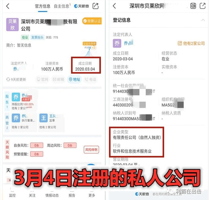 查到了这家公司是3月4日在深圳注册的私人公司!