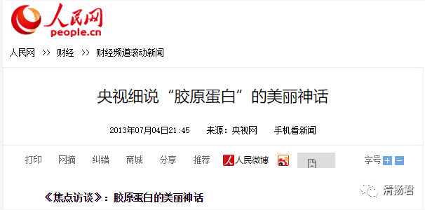 2013年7月4日,人民网发文《央视细说“胶原蛋白”的美丽神话》。