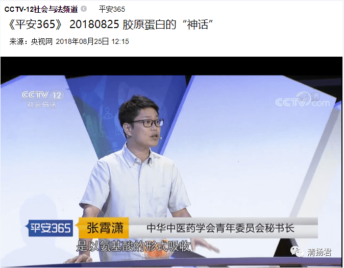 2018年8月25日央视-12社会与法频道播出的《平安365栏目》中,又一次揭秘了胶原蛋白的“神话”。