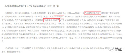 近日,百色市市场监督管理局公布2020年3·15全市消费维权典型案例。其中,第6宗梁某介绍他人参加传销行为案(百右市监处字〔2019〕68号)提到了社交电商平台未来集市。在这一传销案例中,“消费返利”成为传销新模式,要求会员及加入者交纳入门费或者变相交纳入门费,靠发展下线盈利,颇具迷惑性。而且等级隐藏性极强,除非查看后台数据。在本案中,百色市市场监督管理局虽然认定梁某是“介绍他人参加传销”行为,但无法计算具体的等级提成。