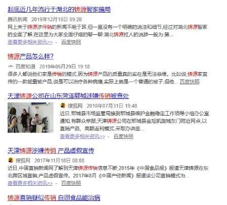 实际上,天津铸源公司早已于多年前便被《中国产经新闻》《中国食品报》等权威媒体曝光,涉嫌变相传销及产品虚假宣传。2018年7月,该公司在山东菏泽郓城涉嫌传销,还受到了当地市场监管部门的依法查处。如今铸源将传销洗脑搬上抖音,用广告费换取抖音的倾斜流量支持,二者共同牟利,显然将抖音用户当做了新的“待宰羔羊”。