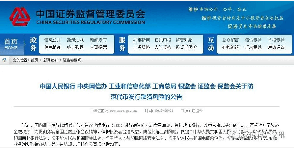 早在2017年9月,证监会等七部委发布公告明确指出,虚拟货币交易和代币发行是非法金融活动,各类代币发行融资活动应当立即停止。任何所谓的代币融资交易平台不得从事法定货币与代币、“虚拟货币”相互之间的兑换业务,不得为代币或“虚拟货币”提供定价、信息中介等服务。