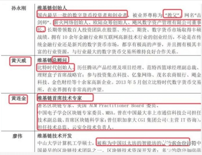 此外,维基链多次对外所宣传的孙永刚、黄天威和黄连金所组成的维基链创始团队中,三人并没有任何股权上的利益绑定,只可能存在 token 分配上的站台关系,也可能三者根本没有关系。