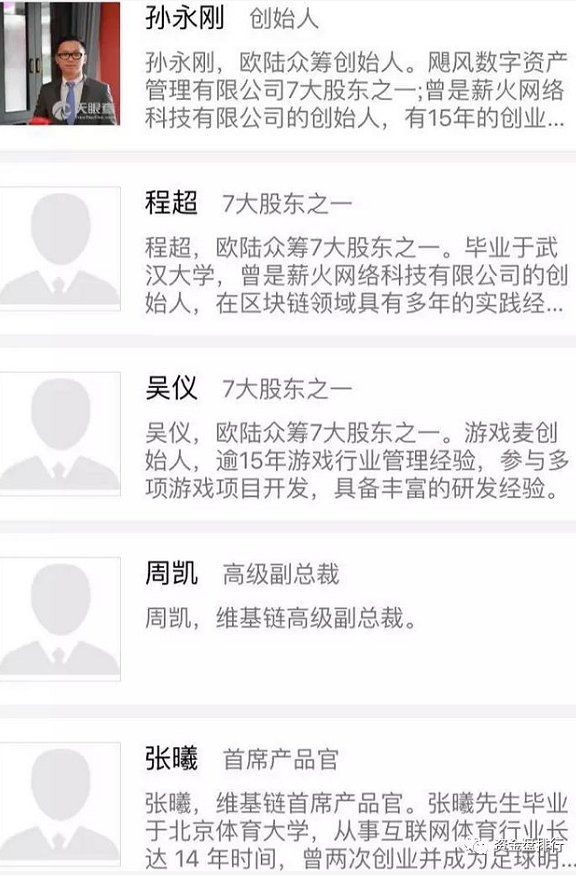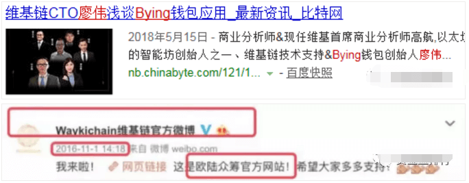 不仅仅是打着刚才两位大牛的旗号,白皮书上团队人员顺位第四位的“维基链技术开发”廖伟还在在做着其他项目,其余三家对外任职的三家公司也和维基链没有任何的关系。连官方微博也甚是敷衍——维基链官微的前身是维基链创始人孙永刚上一个创业项目欧陆众筹的官方微博,维基链项目方只是将官微改了下名字。