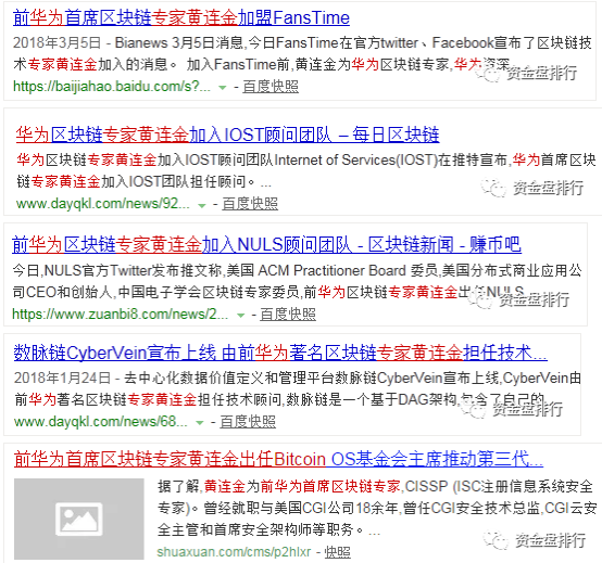 同样地,前华为首席区块链专家黄连金也仅仅出现在维基链官网、白皮书以及相关的项目通稿中,搜不到黄连金本人对这个项目的评价,也更难感受到作为“维基链首席技术专家”的他对于团队有什么技术上的贡献。另外,除了维基链之外,黄连金还给其他项目站台,有些项目的加入时间还与维基链开发时间相撞,所以这个“首席技术专家”能有多少精力分配到这样一个项目上可想而知。
