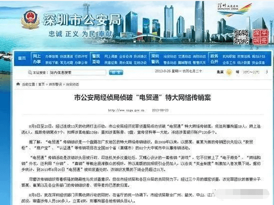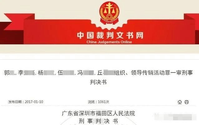 据深圳市福田区人民法院的判决书显示,2012年8月至2013年3月,被告人郭某伙同崔某、罗某等人以电贸通公司及深圳分公司的名义,纠集李某亮等五名被告人,利用P.CN网站为网上平台,以销售“电贸通技术套件”和“明德入驻卡”为名,以高额返利、互联网升值前景为诱饵,宣传并引诱他人参加传销活动。