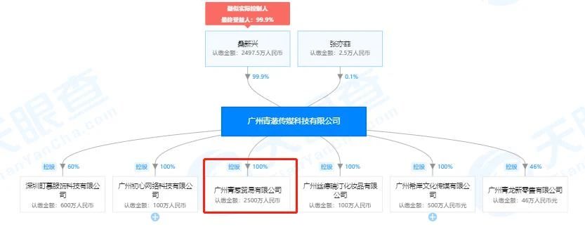 而广州青葱贸易有限公司则是广州青葱传媒科技有限公司100%对外投资公司。
