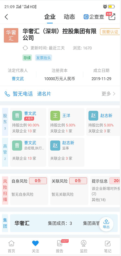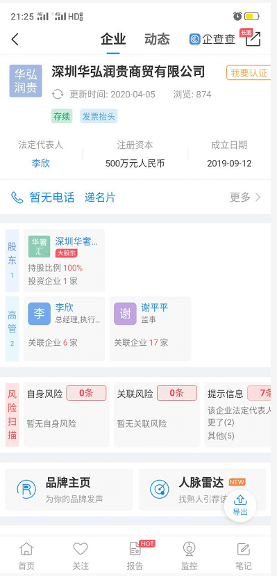 在代理的宣传之中常提到对外一家公司,深圳华弘润贵商贸有限公司,宣称其为央企,小编通过企查查查询到该公司为华奢汇公司百分百控股