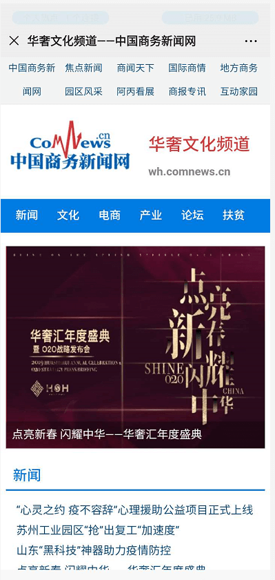 在华奢汇公众号下面链接直接通往中国商务新闻网,网站上开设了华奢汇专栏,