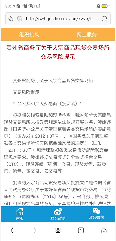 而在半月前贵州省商务厅发布风险提示函,同时公布贵州省境内合法的大宗商品交易场所名单