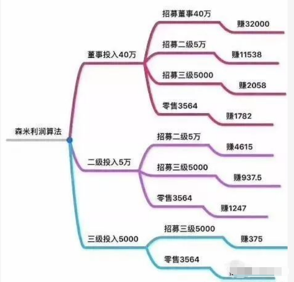 相对于推荐产品售卖货物来说,这些代理似乎更热衷于推荐下级代理来收取服务费,而且成为森米代理商并不难。公司有优惠活动的时候,原来需要5万元的启动资金,只要3.68万元就可以成为二级代理、开启创业。成为二级代理后,只需要8-10个减肥客户就可以回本。