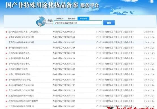 记者查询发现,佳多丽备案的非特殊用途化妆品均显示佳多丽为“委托企业”,非自主生产。